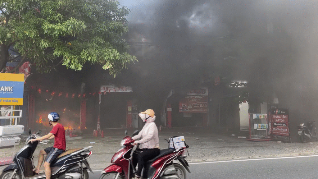 Sự việc xảy ra khoảng 9h00 sáng nay tại một cửa hàng FPT ở Phú Xuyên – Hà Nội. Lực lượng chữa cháy đã có mặt để đám cháy không lan sang các ngôi nhà bên cạnh